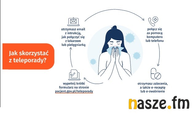 Narodowy Fundusz Zdrowia przypomina, że w razie potrzeby każdy może skorzystać z teleporady wideo lub telefonicznej i otrzymać niezbędną pomoc medyczną. Teleporada online to rozwiązanie uruchomione przez Ministerstwo Zdrowia, które pozwala pacjentom na łatwy i szybki kontakt z pracownikiem medycznym za pomocą wideorozmowy, chatu lub telekonferencji, bez konieczności wychodzenia z domu.