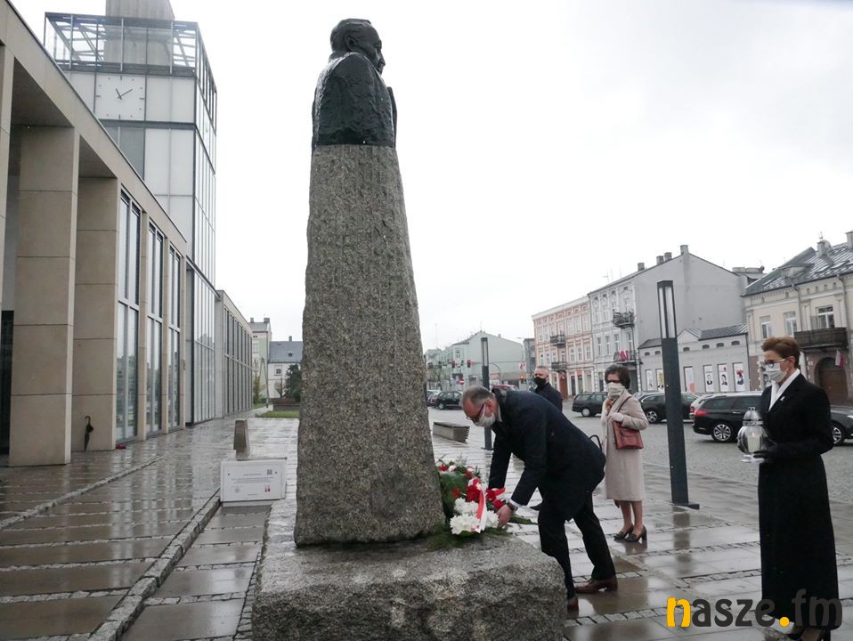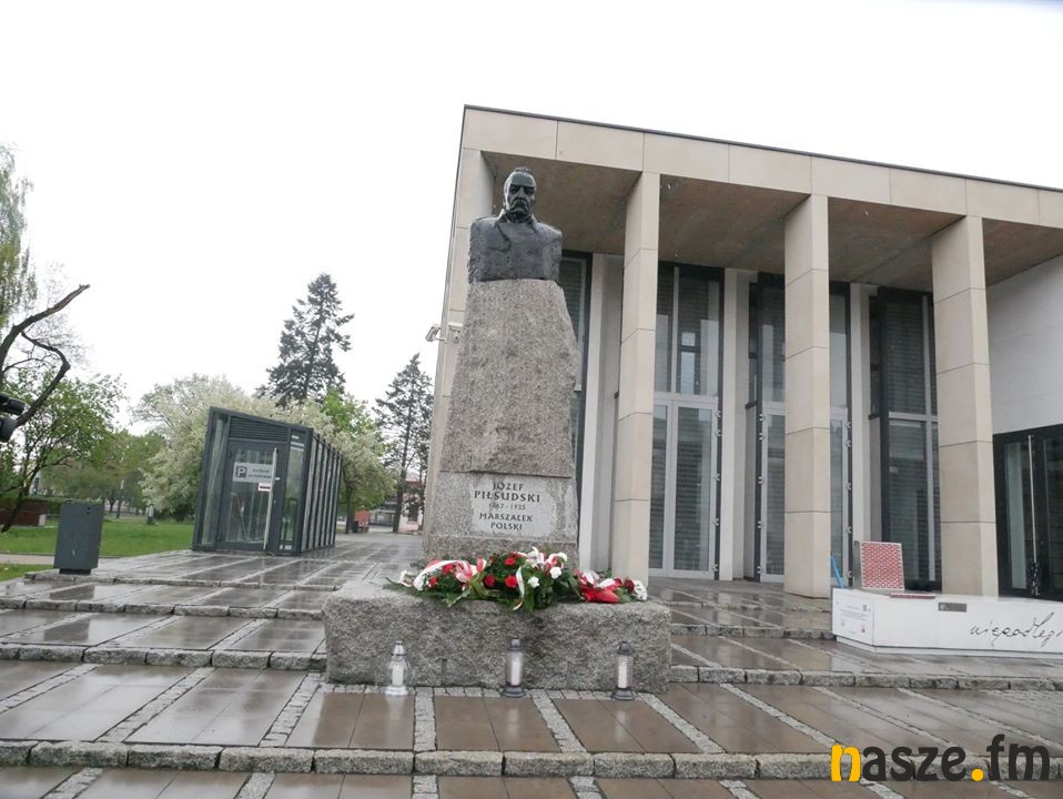Hanna Iwaniuk, Starosta Zduńskowolski, Wojciech Rychlik, Wicestarosta Zduńskowolski i Marci Łabędzki, Etatowy członek Zarządu Powiatu Zduńskowolskiego w rocznicę uchwalenia Konstytucji 3 maja złożyli kwiaty przy pomniku Józefa Piłsudskiego.