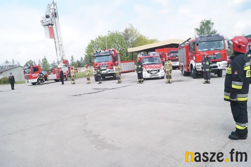 Symboliczną uroczystość zorganizowano przed Komendą Powiatową PSP w Sieradzu. Strażacy i to jedynie ci z dzisiejszej zmiany służbowej stanęli na zbiórce w odległości 2 m od siebie. Nie wręczano awansów i odznaczeń.