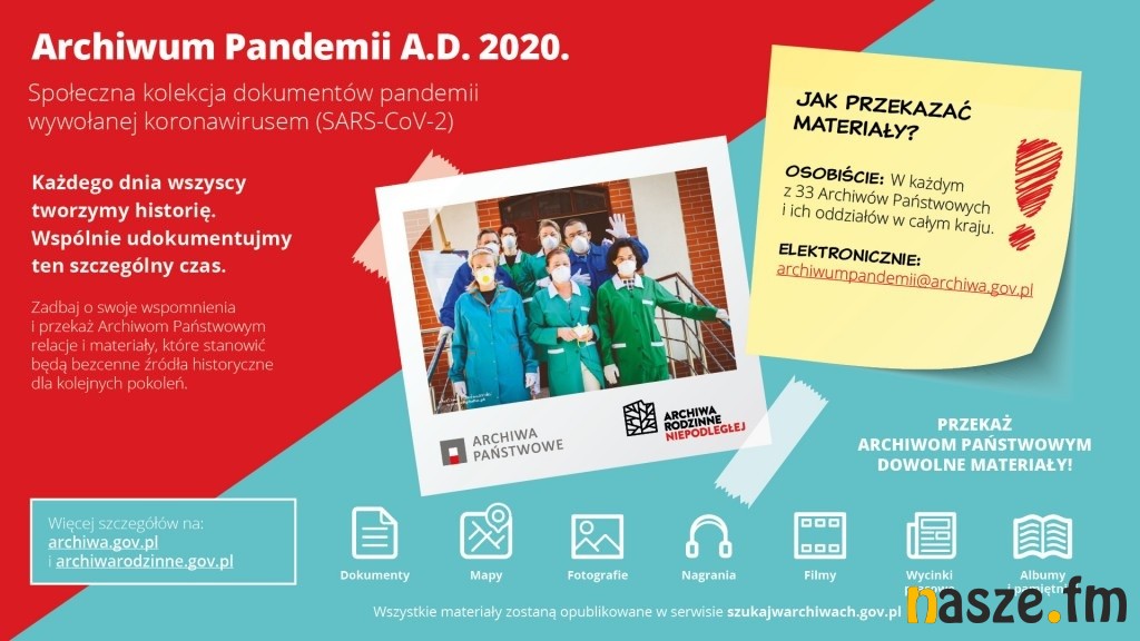 Zgłoszenie chęci udziału w akcji można przesłać na adres: archiwumpandemii@archiwa.gov.pl, gdzie pracownicy Naczelnej Dyrekcji Archiwów Państwowych odpowiedzą na pytania, udzielą dalszych informacji oraz wskażą, do którego archiwum najlepiej przekazać materiał.