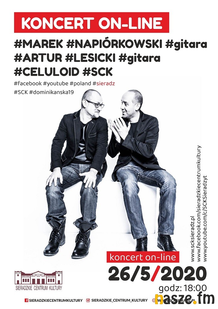 We wtorek 26 maja SCK zaprasza do wysłuchania online koncertu gitarowego duetu. Wystąpią Marek Napiórkowski i Artur Lesicki. Gitarzyści zaprezentują materiał ze swojej płyty "Celuloid".