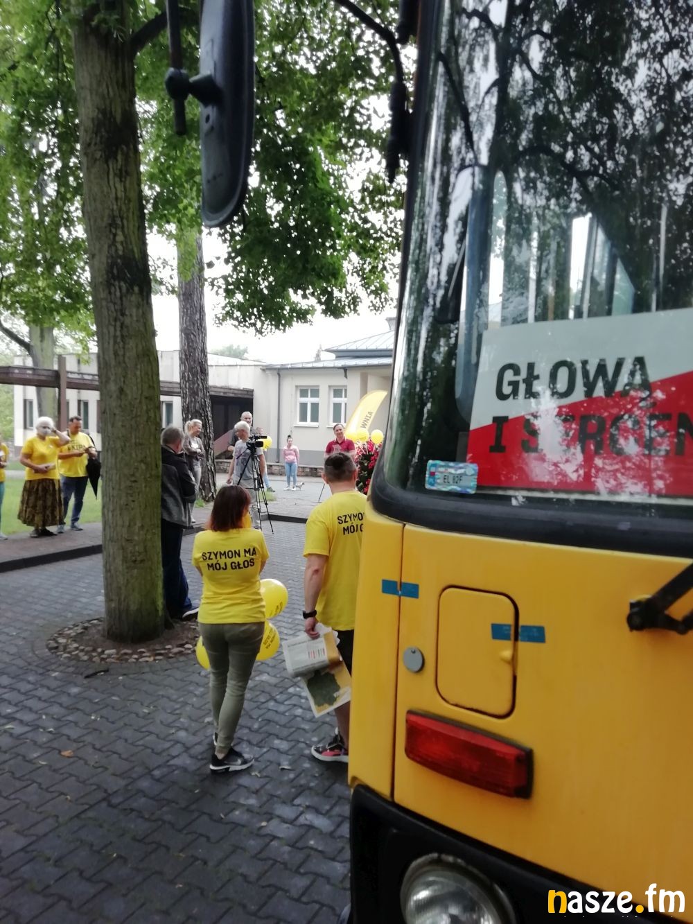 Wraz z nim pojawili się wolontariusze z Łodzi, którzy wraz z lokalnymi sympatykami rozmawiali o Szymonie, a także śpiewali piosenkę stworzoną na potrzeby oststniego tygodnia agitacji. Sobota była pierwszym dniem podróży IKARUSA po województwie, kiedy to odwiedził jeszcze m.in. Łask czy Bełchatów.