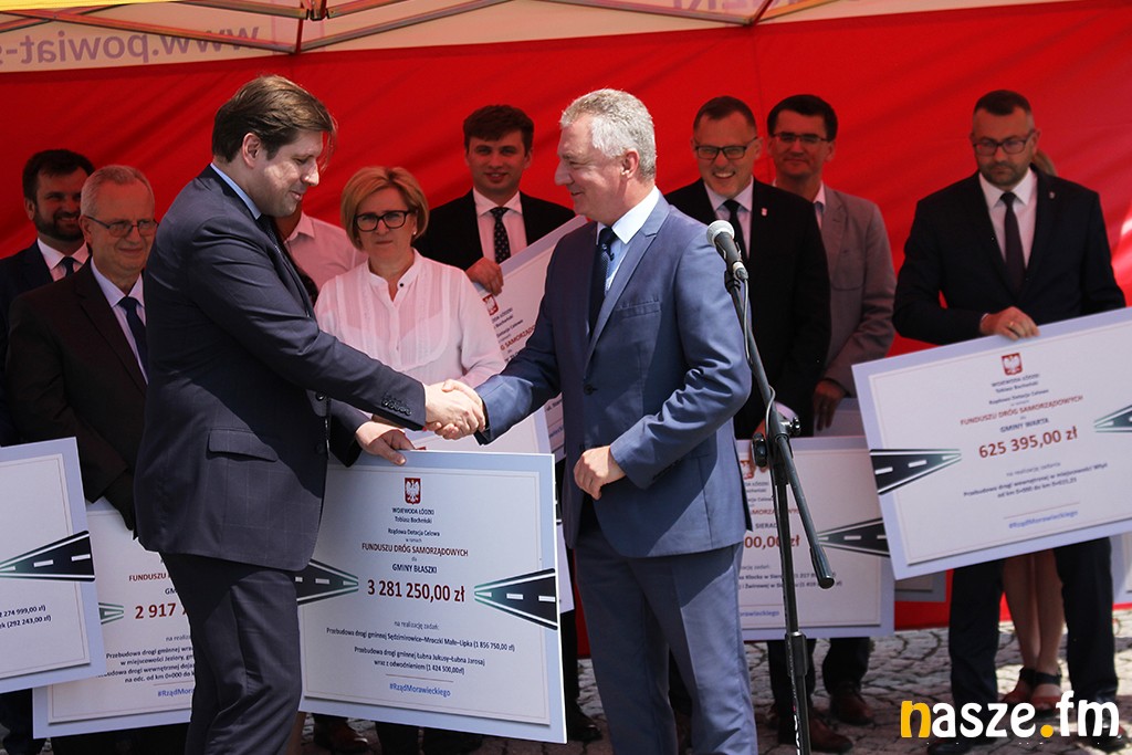 Wojewoda łódzki Tobiasz Bocheński wręczył dziś - 26 marca - samorządowcom z powiatu sieradzkiego symboliczne czeki z dofinansowaniami przyznanymi w ramach Funduszu Dróg Samorządowych na 2020 rok. Podobnie było w Zduńskiej Woli, gdzie wicewojewoda Karol Młynarczyk wręczył czek władzom gminy Zduńska Wola.
