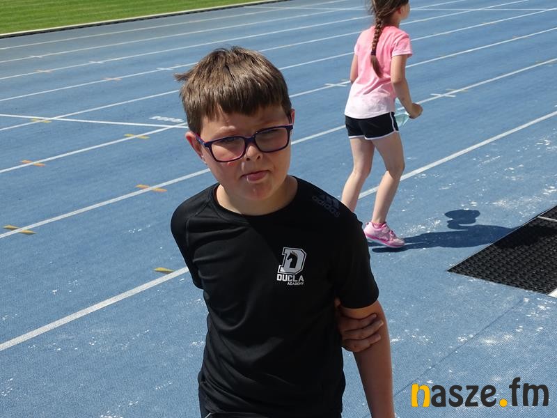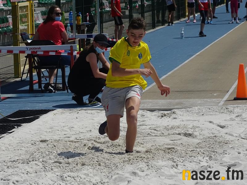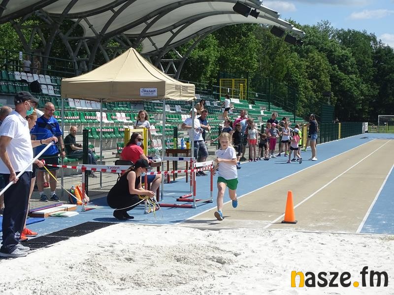 Jako pierwsi do startu stanęli młodzi lekkoatleci z klas 1-8 szkół podstawowych. Rywalizowali w: biegu na 60 m, rzucie piłeczką palantową, skoku w dal, skoku wzwyż, biegu na 400m (klasy 1-3) i 600 m (4-8). Żeby otrzymać pamiątkowy medal trzeba było ukończyć przynajmniej trzy konkurencje. Znaleźli się jednak śmiałkowie, którzy wystartowali we wszystkich.