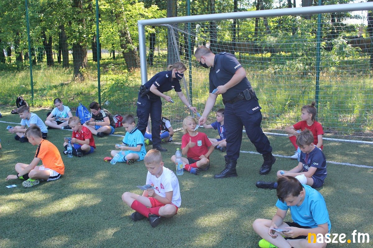 Policjanci zduńskowolskiej komendy prowadzili działania mające na celu poprawę bezpieczeństwa osób wypoczywających nad wodą. Tego dnia przeprowadzili spotkanie z dziećmi biorącymi udział w zajęciach sportowych na terenie Miejskiego Ośrodka Sportu i Rekreacji, przy ul. Łaskiej w Zduńskiej Woli. Pogadanka dotyczyła ogólnie pojętego bezpieczeństwa dzieci i młodzieży podczas wakacji. Poruszone zostały zagadnienia dotyczące bezpieczeństwa na drodze, w podróży, wypoczynku nad wodą. Uczestnicy otrzymali ulotki zawierające informacje, promowane poprzez ogólnopolską akcję - "Kręci mnie bezpieczeństwo nad wodą". Dzieci chętnie uczestniczyły w spotkaniu i zadawały liczne pytania, związane z bezpiecznym wypoczynkiem. Po spotkaniu policjanci kontrolowali obszar okalający zbiornik wodny „Kępina” i miejsca wypoczynku nad rzeką Wartą, gdzie również rozmawiali z przebywającymi tam osobami, o bezpieczeństwie nad wodą i rozdawali ulotki informacyjne.