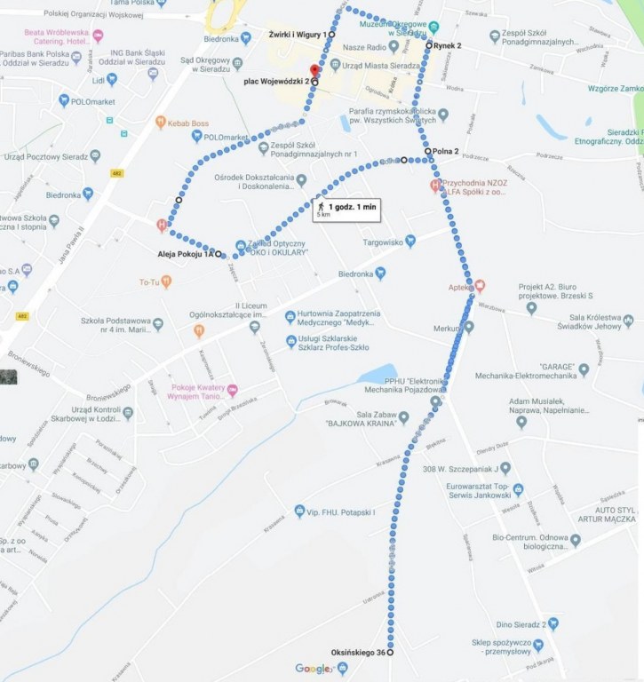 Start i meta będą się znajdować na Rynku w Sieradzu. Biuro zawodów znajdować się będzie w Centrum Informacji Kulturalnej. W biegu głównym zawodnicy będą mieli do pokonania dystans 10 km (dwie pętle po 5 km). Trasa jest atestowana. Wystartują też dzieci na 400 m.