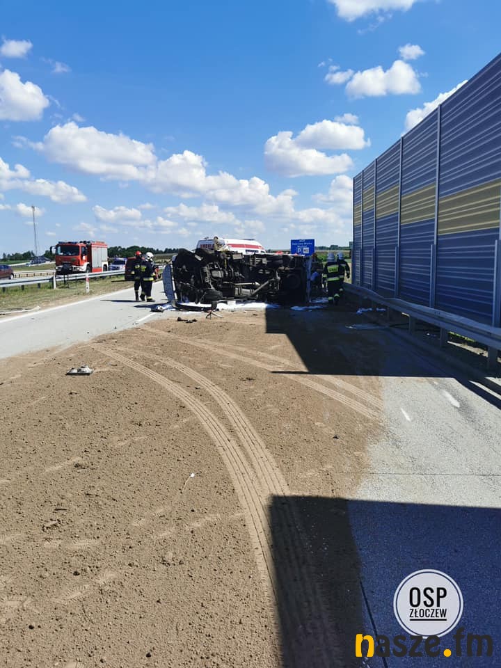 Na drodze ekspresowej S8 pomiędzy węzłami Złoczew a Sieradz Południe doszło dziś rano do kolizji. Samochód osobowy uderzył w tył ciężarówki, która następnie przewróciła się. Droga przez kilka godzin była zablokowana.