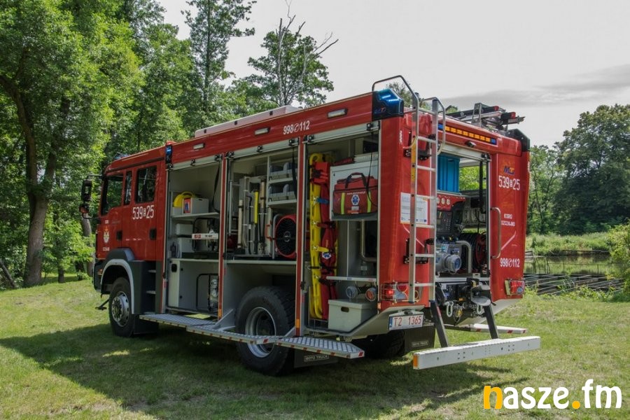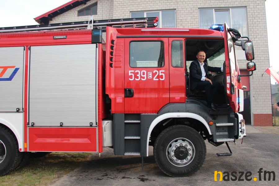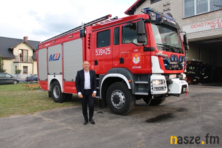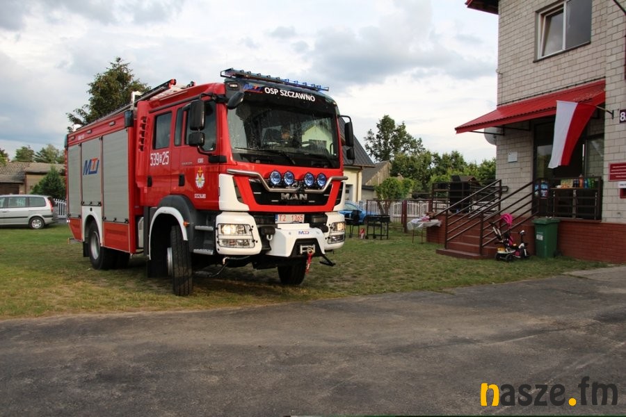 Do Ochotniczej Straży Pożarnej w Szczawnie (gm. Burzenin) dotarł długo wyczekiwany samochód pożarniczy. Nowy MAN TGM 18.320 4X4 BB został przywitany racami, fontanną wodną i oklaskami.