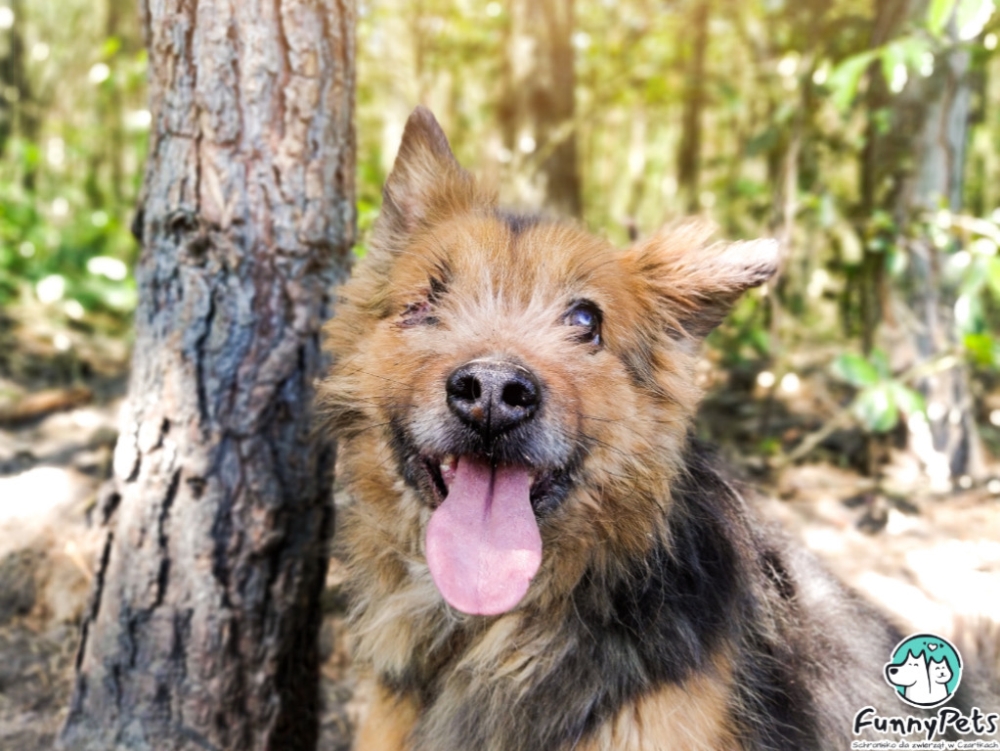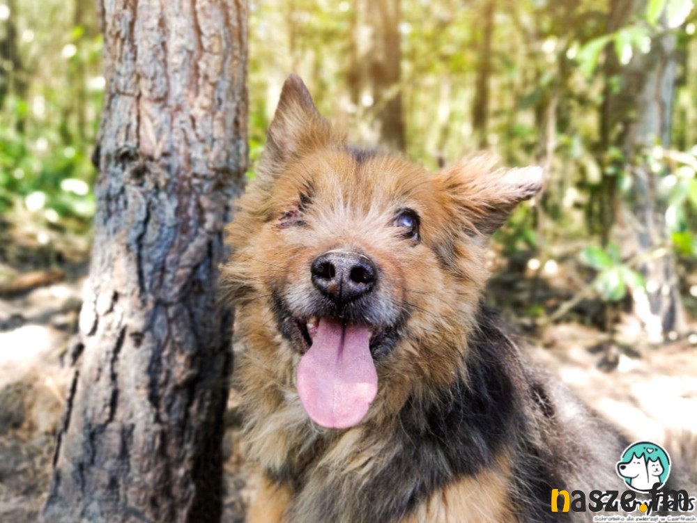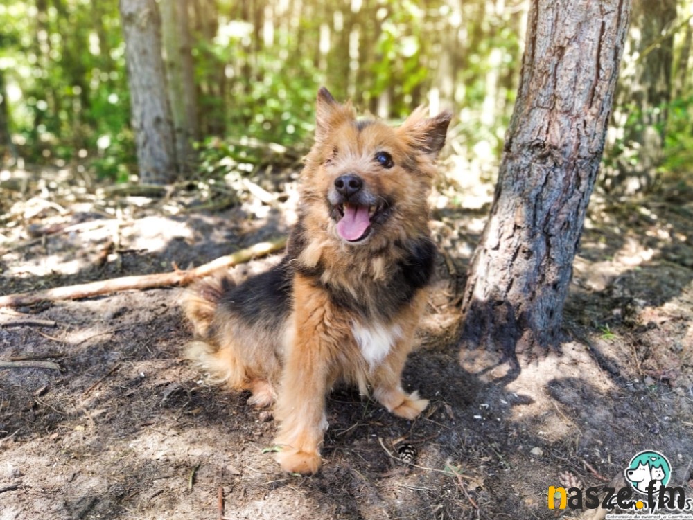 Ten uśmiechnięty pyszczek osłodzi Wam czwartek. 10-letni Baddie szuka domu, w którym będzie mógł być sobą, zostanie w pełni zaakceptowany przez domowników i otrzyma dużo miłości. W stu procentach na to zasługuje. Baddie to wyjątkowy pies, który nie widzi, ale czuje dobrych ludzi. Jest niewidomy, jednak nie przeszkadza mu to w jego psim życiu. Na początku, do nowych osób podchodzi z wielkim dystansem, ale jeśli komuś zaufa, kiedy wsłucha się w jego dobry głos, to można śmiało mówić o dobrym początku długiej przyjaźni. Baddie uwielbia rozdawać buziaki i ciągle domaga się głaskania, zwłaszcza po brzuchu i za uchem. Dosłownie staje na dwóch łapkach i wtula się głową w człowieka. Spaceruje jedynie po trawie, na chodniku czy płytkach robi "żabę" i czeka, aż ktoś łaskawie weźmie go na ręce. Więc ta kwestia wymaga treningu. Nie lubi psów natarczywych, warczy na nie, więc najlepiej, żeby wcześniej zapoznał się z psim rezydentem. Baddie odnajdzie się wszędzie, ale ważne, żeby żył z domownikami. Jeśli już komuś zaufa, to będzie najwierniejszym psiakiem na świecie