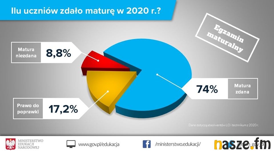 Ponad 257 tys. absolwentów liceów i techników poznało swoje wyniki matur w sesji głównej. Egzamin ze wszystkich przedmiotów obowiązkowych zdało 74 proc. z nich.