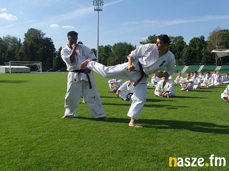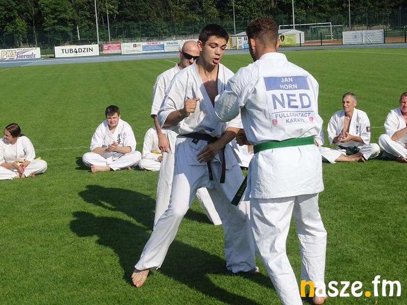 - Są tutaj medaliści mistrzostw Europy i świata. Przyjechali wszyscy dla przepięknej atmosfery, którą postaramy się stworzyć i dla tej energii, którą też chcemy, żeby od nas czerpali i żeby im na cały rok wystarczyła. Przez te cztery dni czekają nas treningi bardzo ekstremalne. Za chwilę będą dwie walki full contactowe. Będzie walczył zawodnik z Holandii i Czech i zawodnik z Holandii i Polski. Teraz mamy rozgrzewkę i elementy kihon, czyli różnych kombinacji. Później będzie bardzo ekstremalny trening z takimi palami drewnianymi, z którymi będą musieli przez godzinę trenować. Jest to bardzo wyczerpujące. Nie będziemy tylko trenować na płycie stadionu. Czekają nas także ćwiczenia w sali czy na Wzgórzu Zamkowym. Będziemy też korzystać z rzeki Warty. Tam jutro od rana, od 7:00 do 8:00 będziemy ciężko trenować. Zapraszam wszystkich serdecznie - mówi trener i prezes Sieradzkiego Klubu Karate Kyokushin Robert Wajgelt.