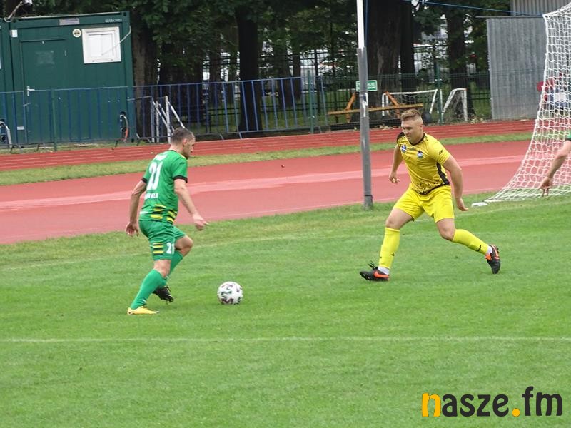 Pogoń mogła strzelić w 19 minucie. Doszło do zamieszania w polu karnym gości, przy piłce znalazł się Jakub Kaczmarek. Jego uderzenie trafiło jednak w słupek. Kilka minut później akcja przeniosła się pod bramkę Pogoni. Andrzej Dolot strzelił, piłka dostała rotacji i nieznacznie poleciała nad poprzeczką. Pierwsze trafienie padło w 35 minucie. Patryk Sławiński podał prostopadle do Mateusza Brozia, ten znalazł się sam na sam z bramkarzem i umieścił piłkę w siatce.