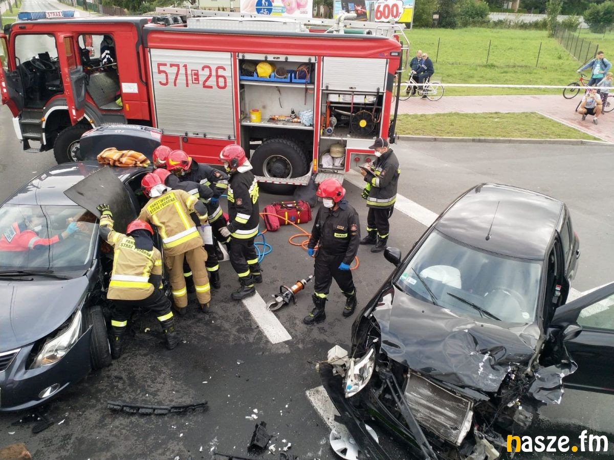 Jedna z kobiet została zakleszczona w pojeździe. Strażacy przy pomocy rozpieraczy hydraulicznych wykonali dostęp do poszkodowanej.