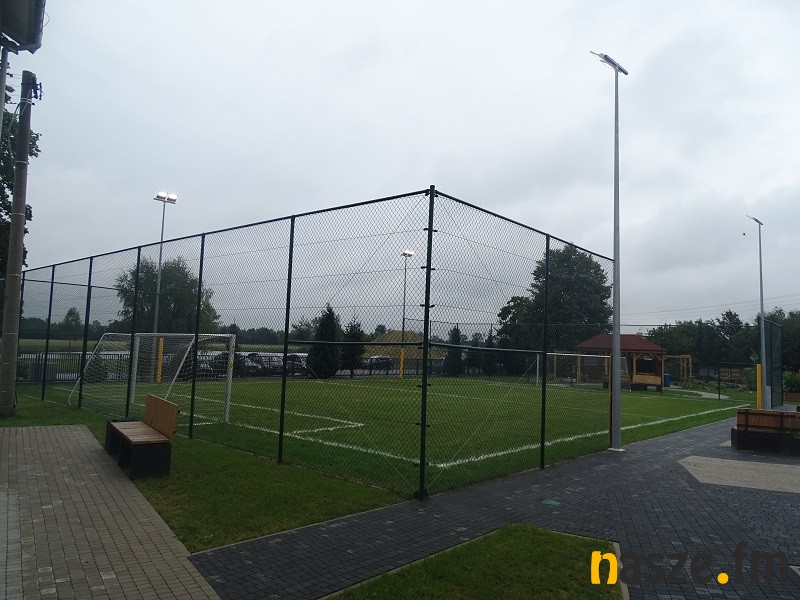 Budowa tego obiektu rozpoczęła się dokładnie rok temu. Dziś szkoła ma piękne boisko trawiaste o wymiarach 20x30 m. Obiekt jest oświetlony i ma również zamontowane piłkochwyty. Dookoła wydzielono alejki z kostki brukowej oraz miejsca dla publiczności. W pobliżu znajduje się również drewniana altana i tereny zielone.