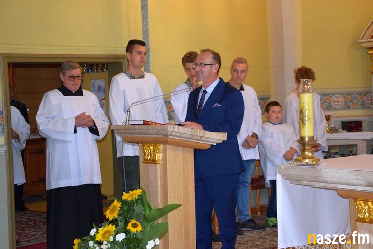 Wójt gminy Zduńska Wola Henryk Staniucha w swoim wystąpieniu przed rozpoczęciem nabożeństwa nawiązał do chleba.