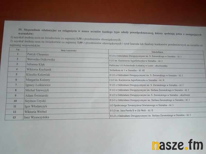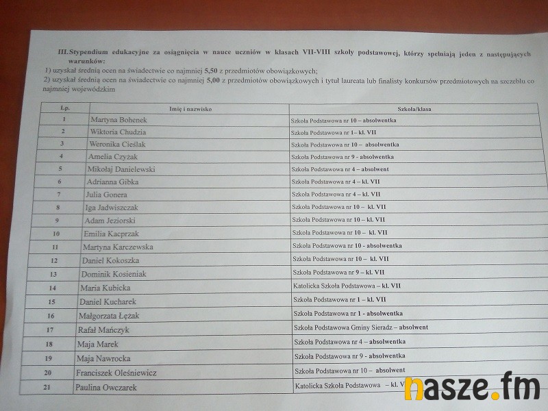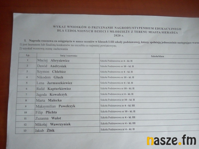 Stypendia otrzymali uczniowie klas VII-VIII szkół podstawowych oraz młodzież ze szkoły średniej. Warunkiem przyznania tych wyróżnień była średnia przynajmniej 5.50 lub 5.00 dla laureatów i finalistów konkursów na szczeblu co najmniej wojewódzkim. Stypendia otrzymało 29 uczniów szkół podstawowych i 13 ze szkół ponadpodstawowych. Stypendia przyznano w wysokości od 700 do 1000 zł.