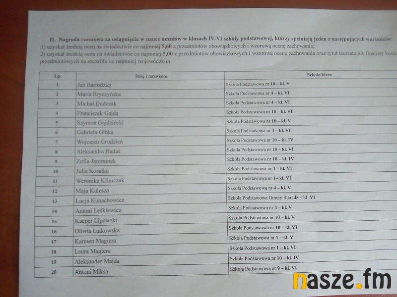 13 uczniom z klas I-III szkół podstawowych przyznano nagrody rzeczowe. Otrzymali je finaliści konkursów na szczeblu co najmniej powiatowym, którzy mieli wzorową ocenę zachowania.