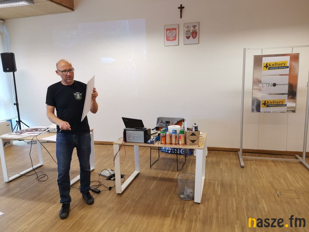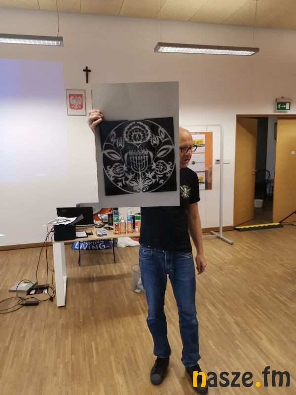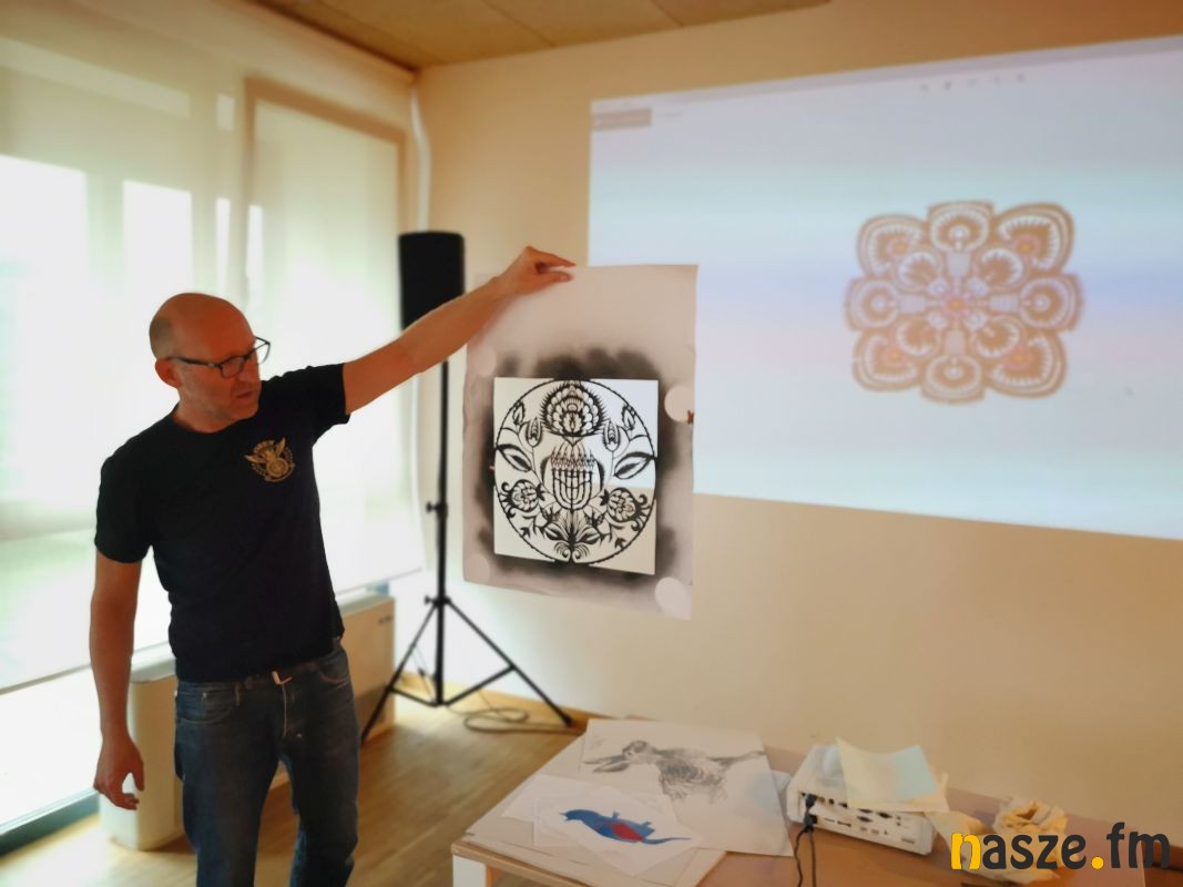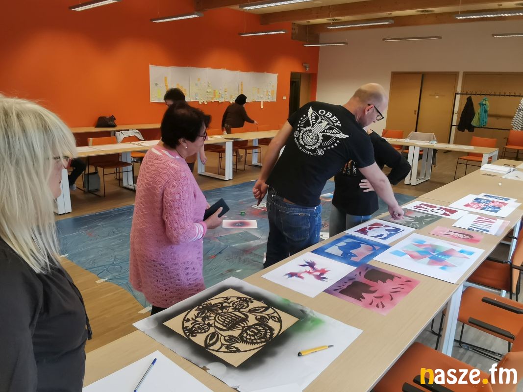 - Graffitti i sztuka ulicy, którymi wielu z nas dzisiaj się inspiruje, w bardzo dużym stopniu wpłynęły na sztuki wizualne – mówił na wtorkowym spotkaniu Michał Arkusiński. Kultura ludowa krzyżuje się z kultura miejską. Wiele ciekawych projektów można stworzyć na podstawie szablonów. Wykorzystując sieradzkie motywy, sieradzkie wycinanki wykonałem na dzisiejsze spotkanie szablon, który może Was zainspirować do stworzenia czegoś oryginalnego – podkreślał Arkusińki.