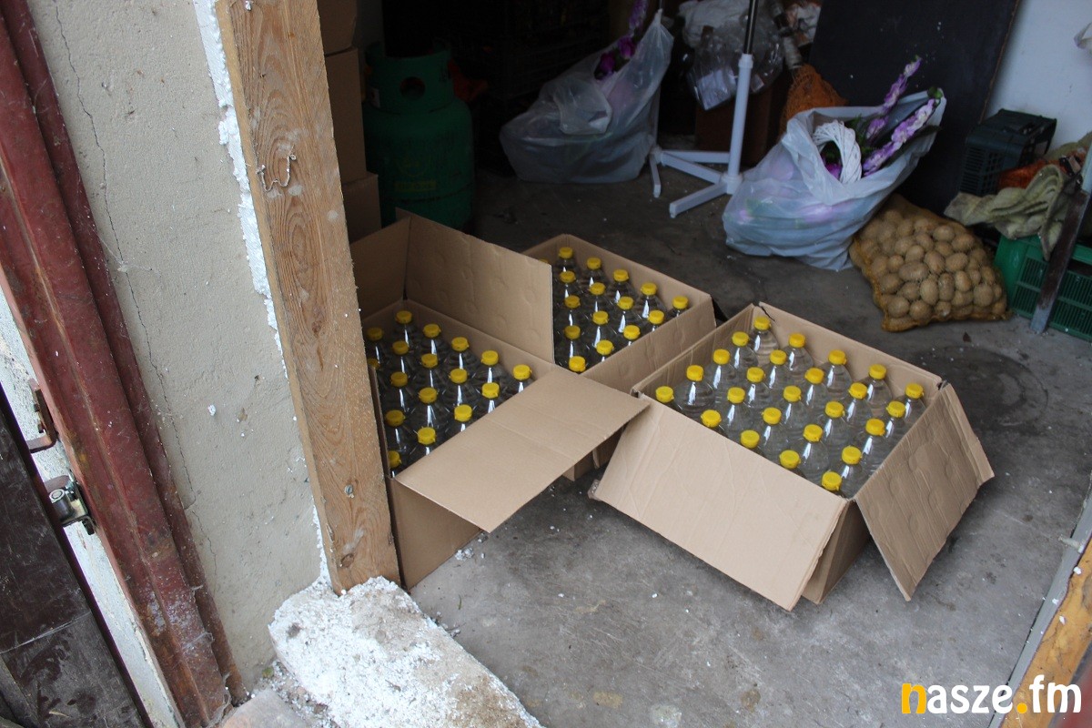 Policjanci przeszukali również użytkowane przez niego pomieszczenia na terenie prywatnej posesji w powiecie łaskim. Okazało się, że mężczyzna magazynował tam większe ilości nielegalnych towarów. Znaleziono tam 200 butelek alkoholu bez polskich znaków akcyzy (180 litrów nielegalnego alkoholu).