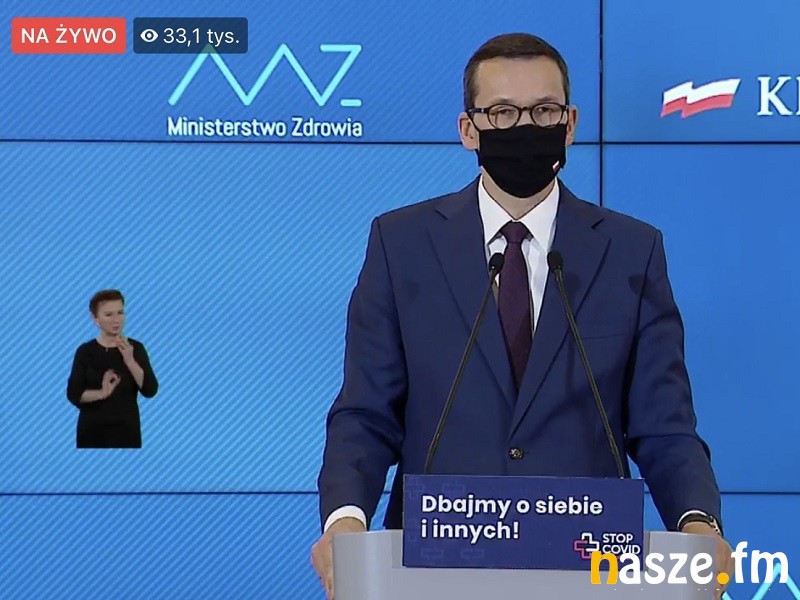 Szef rządu poinformował na konferencji prasowej, że cała Polska od soboty staje się strefą czerwoną.