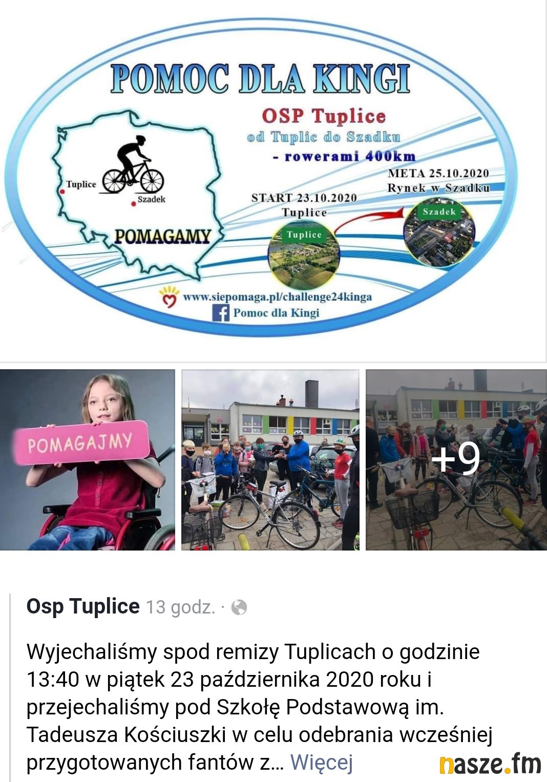 - Niestety pandemia, skutecznie udaremniła wszystko. Jednak Szadkobiegacze biegną a Strażacy jadą rowerami pomimo wszystko! Pokonali dla Kingi po 400 km! W najbliższą środę, Jacek Balcerak przejdzie całe wybrzeże bałtyckie - od Świnoujścia po Hel - 350 km! – informuje ciocia Kingi.
