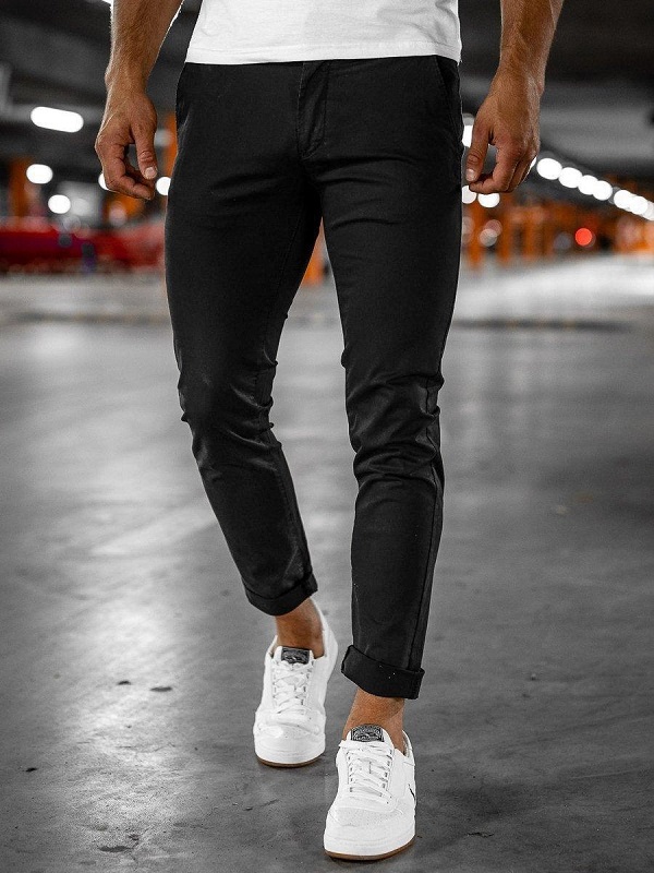 Jeżeli chcesz wyglądać eleganckie i szykownie, zamień jeansy na chinosy lub spodnie w kant. Kompletując garderobę, zacznij od konserwatywnych kolorów, takich jak granat, szary, czarny i camelowy.