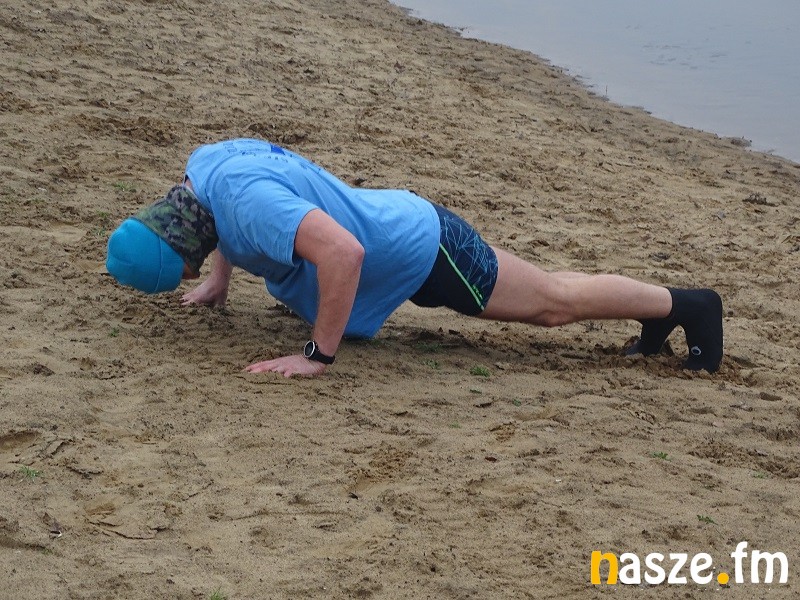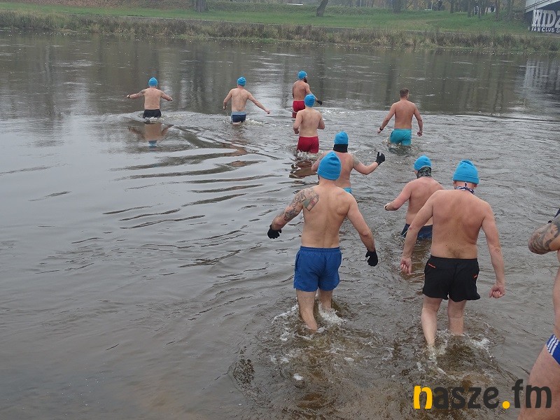 Wejście do wody poprzedziła obowiązkowa rozgrzewka na plaży nad rzeką Wartą. Wspomniani kibice zajęli z kolei dogodne do obserwacji miejsca na tzw. białym moście.