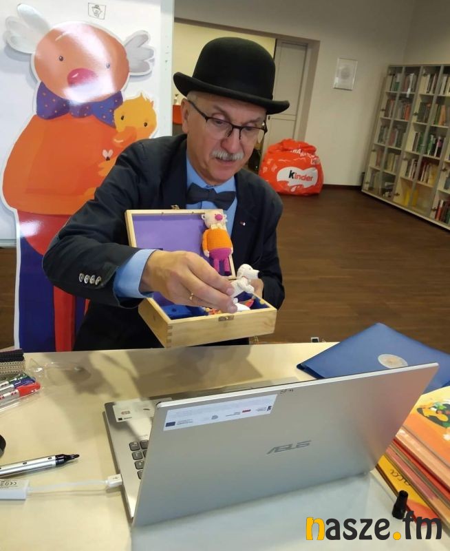Pisarz jest autorem ponad 30 książek, znany głównie z serii o Panu Kuleczce i Wesołym Ryjku. Opowiedział dzieciom, skąd czerpie pomysły do swoich książek, a także przedstawił milusińskim kaczkę Katastrofę, psa Pypcia i muchę Bzyk - Bzyk zrobioną na szydełku oraz pokazał tajemniczy kuferek, w którym ukryty jest wesoły Ryjek.