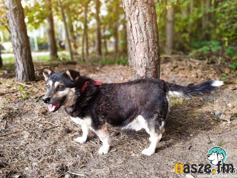 Na początek Warkotek. To 14-letni seniorem pełny wigoru i chęci do życia. Chłopak lubi sobie pogadać, swoje dziwne odgłosy wydaje zawsze wtedy kiedy jest mu dobrze - stąd geneza jego imienia. Czochranie po zadku uwielbia. Całe swoje życie spędził w różnych schroniskach, więc czas to zmienić. Szukamy dla niego domu, gdzie spokojnie spędzi swoją starość. Ten krótkonożny dżentelmen uwielbia mizianie, dlatego chętnie przebywa w ludzkim towarzystwie. Różnie bywa w stosunku do innych psów, aktualnie w kojcu jest sam, ale z suczką powinien się dogadać. Uwielbia spacery i mimo wieku ma na nie sporo energii, jest żwawym i aktywnym dziadkiem. Ładnie chodzi na smyczy, nie ciągnie, co jakiś czas zatrzymuje się, żeby obwąchać kąty. To typowy śmieszek, na widok opiekunów ciągle cieszy mu się pyszczek. Jest bardzo towarzyski i kontaktowy. Bez problemu dogaduje się z najmłodszymi wolontariuszami na spacerach. Odnajdzie się zarówno w domu z ogrodem, jak i w mieszkaniu.