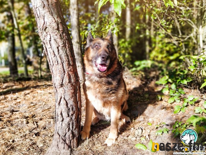 Kolejną podopieczną naszego schroniska, która szuka domu jest 13-letnia Kora. To piękna sunia w typie owczarka niemieckiego. Z racji tego, że jest starszą babcią, to nie potrzebuje już tyle ruchu ze względu na swój wiek. Sunia ma już początki niedowładu łap i problemy z poruszaniem co powinien wziąć pod uwagę jego nowy opiekun. Kora uwielbia spacery, ale trzeba uważać, żeby jej nie przemęczyć i dostosować dystans oraz trasę do jej sił. Jest przekochaną suczką, więc