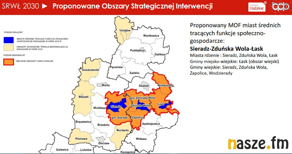 Urząd Marszałkowski Województwa Łódzkiego przygotował analizę, z której wynika, że w regionie mamy aż 9 miast tracących funkcje gospodarczo-społeczne. Na liście są m.in. Sieradz, Zduńska Wola i Łask. Pomóc zmienić tę sytuację w kolejnych latach ma wspólny dla nich Miejski Obszar Funkcjonalny, którego opracowanie jest jednym z elementów tworzonej właśnie Strategii Rozwoju Województwa Łódzkiego do 2030 roku.