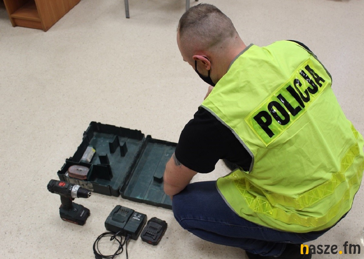 Okazało się, że mężczyzna wychodząc ze sklepu meblowego, zauważył narzędzia znajdujące się na naczepie samochodu dostawczego i postanowił je ukraść. Łupem sprawcy padła walizka, która zawierała m.in. wkrętarkę, baterie, ładowarkę oraz inne akcesoria. Łączna wartość skradzionych przedmiotów to około 1500 zł. Policjanci w trakcie przeszukania piwnicy w miejscu zamieszkania sprawcy odzyskali skradzione mienie.