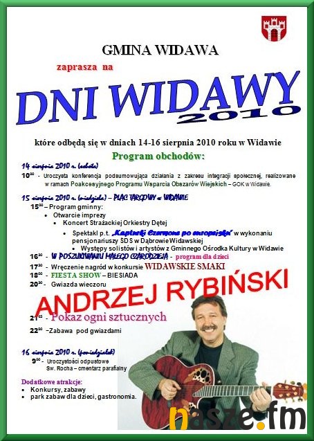 Będzie program dla dzieci w poszukiwaniu "małego czarodzieja", wręczenie nagród w konkursie "Widawskie Smaki" - będą ciasta i inne pyszności, które przygotowują panie z kół gospodyń wiejskich. Później będzie biesiada "Fiesta Show", gwiazda wieczoru - Andrzej Rybiński, artysta da koncert, a na koniec pokaz sztucznych ogni i zabawa pod gwiazdami.