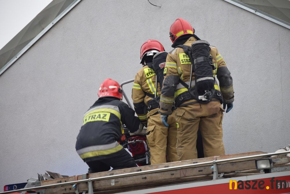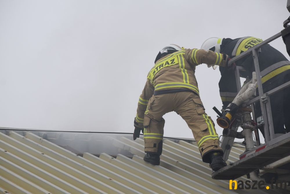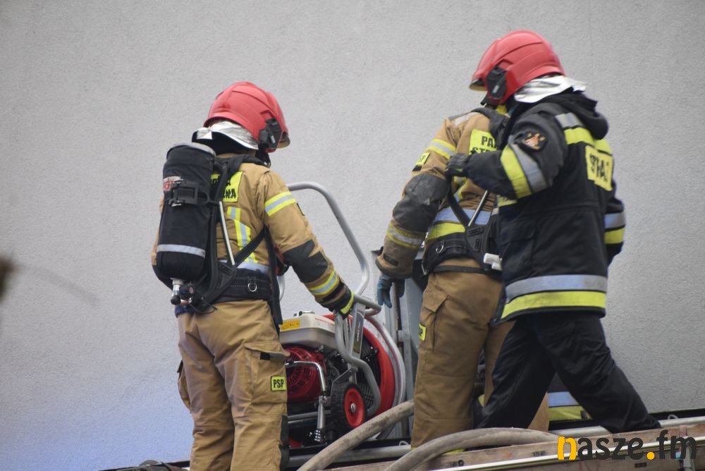 Paliło się poddasze domu jednorodzinnego o charakterze handlowym. Do wygaszenia pożaru konieczne było zerwanie dachu budynku. Najprawdopodobną przyczyną wybuchu ognia był nieszczelny komin.