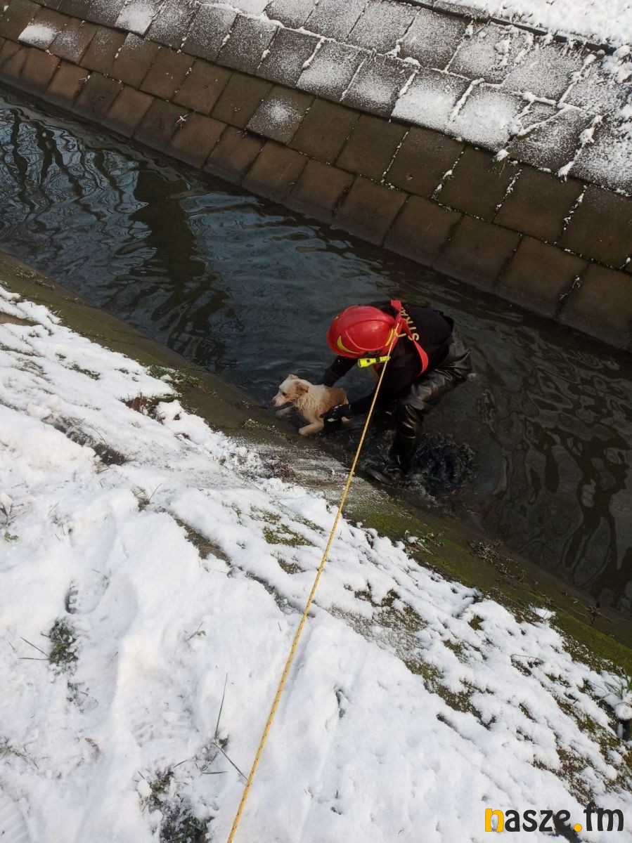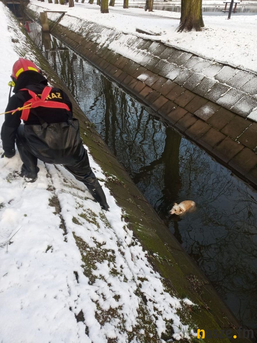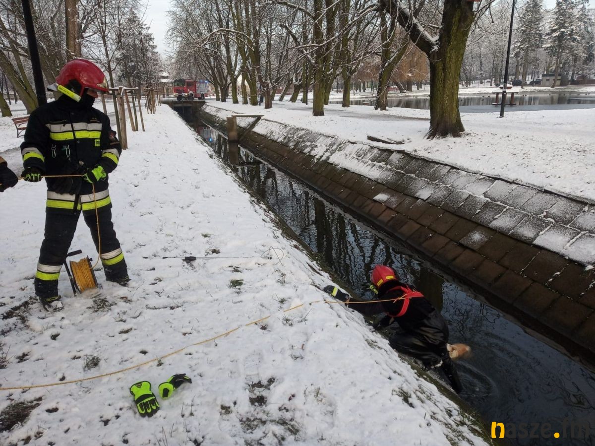 Strażacy interweniowali dziś w sprawie psa, który wpadł do kanału w Parku Miejskim im. Stefana Złotnickiego w Zduńskiej Woli i nie mógł się z niego wydostać. Szyba reakcja pozwoliła uratować czworonoga.