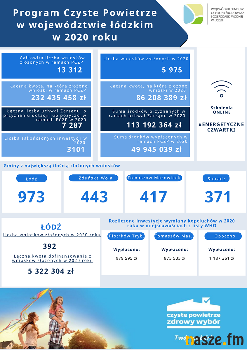 - Ogółem w tym programie nasz fundusz przyjął już wniosków na kwotę ponad 232 mln zł. To bardzo dużo i nie dziwi mnie to biorąc pod uwagę samo zainteresowanie oraz rosnącą świadomość ekologiczną mieszkańców naszego województwa (…) Jeśli chodzi o ilość złożonych wniosków od początku istnienia tego programu przez mieszkańców poszczególnych miast i gmin, to na pierwszym miejscu jest powiat piotrkowski, ponad 1200 wniosków. Potem jest powiat sieradzki i miasto Łódź, gdzie tylko w 2020 roku mieszkańcy złożyli prawie 400 wniosków - podkreśla Wojciech Miedzianowski, prezes Wojewódzkiego Funduszu Ochrony Środowiska i Gospodarki Wodnej w Łodzi.