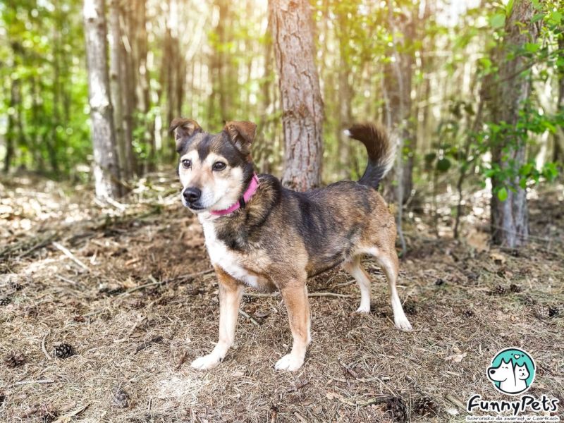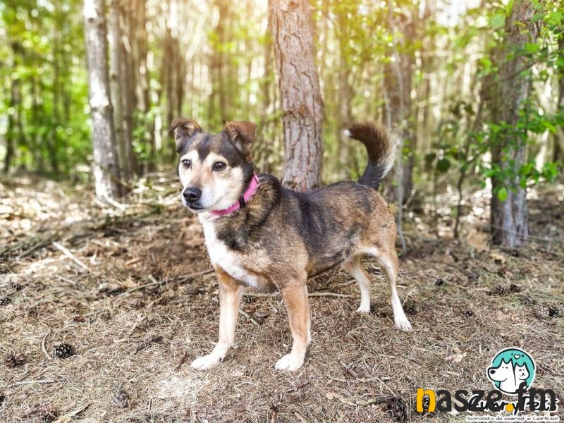 Zaczniemy od młodziutkiej Nelly. Ta sunia to żywe srebro, wszędzie jej pełno i będzie potrzebowała kilku lekcji dobrych manier. Niedawno skończyła rok i nie da się ukryć, że jest psiakiem, z którym będzie trzeba trochę popracować. Ta młoda dama ma bardzo dużo siły i dwa razy więcej energii, potrzebuje naprawdę aktywnego domu, gdzie będzie miała wiele zajęć, przez co z pewnością trochę się wyciszy. Nelly z chęcią zaczepia do zabawy. Potrafi chodzić na smyczy, ale zdarza się jej za nią pociągnąć, jednak uważamy, że przy regularnych spacerach powinno się to zmienić. Jedno jest pewne, ta suczka nie nadaje się do domu, gdzie jest ptactwo. Z psami bywa różnie, z tymi bardziej zaczepnymi raczej się nie dogada, w jej przypadku najlepszy będzie spacer zapoznawczy z psem rezydentem. Jest bardzo spragniona kontaktu z człowiekiem, ale bywa w tych swoich uczuciach czasem zbyt wylewna, potrzebuje opiekuna, który wszystkiego ją nauczy, a będzie naprawdę wierną i wdzięczną sunią. Jeśli jesteście w stanie poświęcić swój czas i uwagę Nelly, to zachęcamy do jej poznania. To dziewczyna, która ma w sobie dużo miłości, ale potrzebuje konsekwentnego opiekuna, który nie da sobie "w kaszę dmuchać".