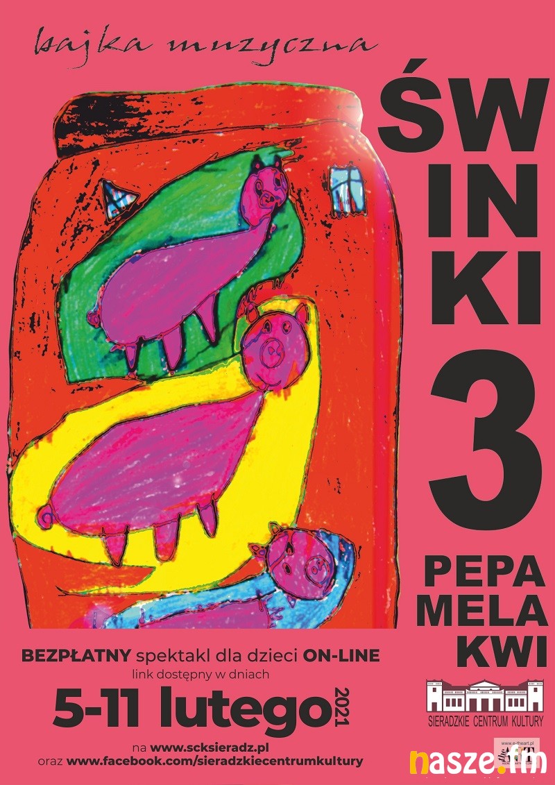 Sieradzkie Centrum Kultury zaprasza na bezpłatny spektakl dla dzieci w wesji online "Świnki 3- Pepa, Mela, Kwi". Premiera spektaklu 5 lutego o godzinie 10.