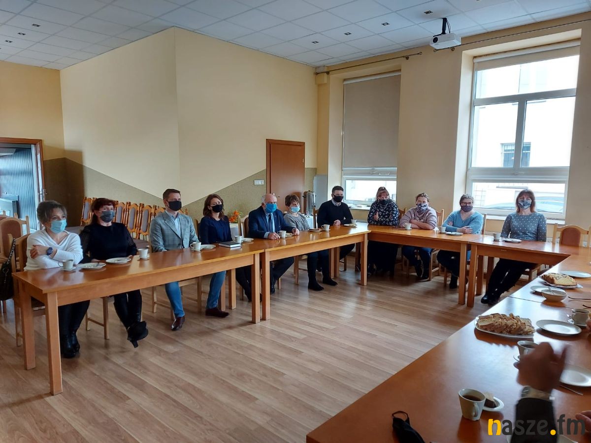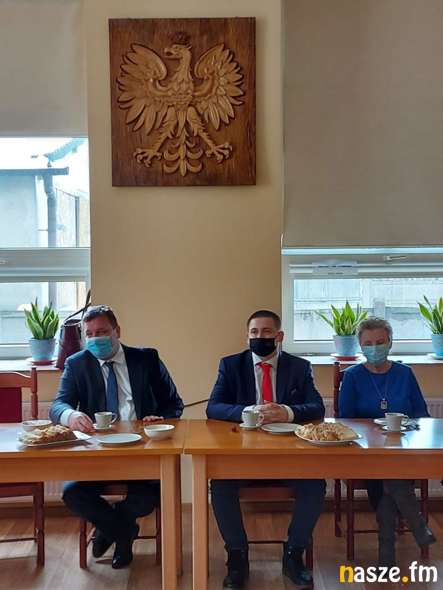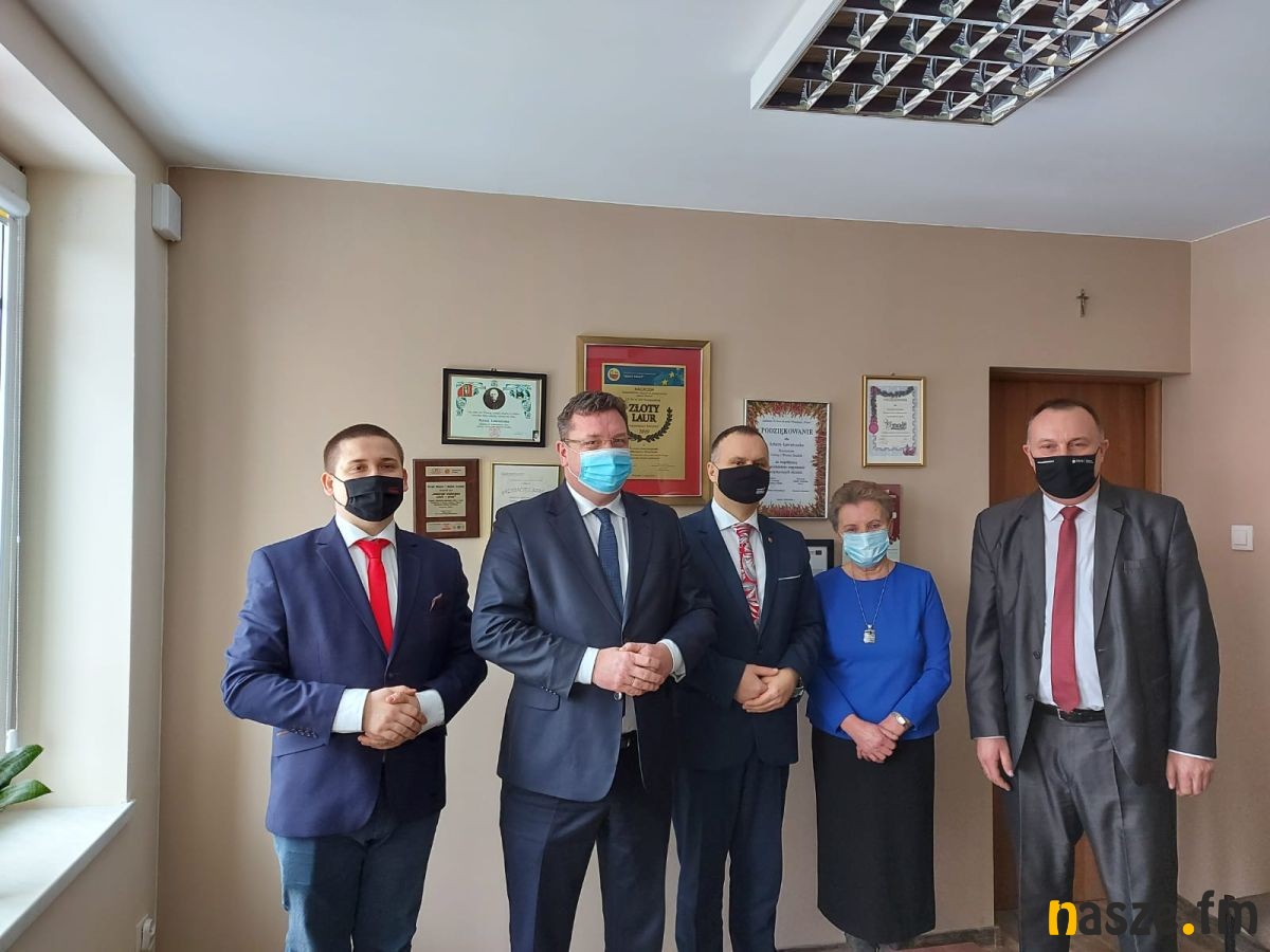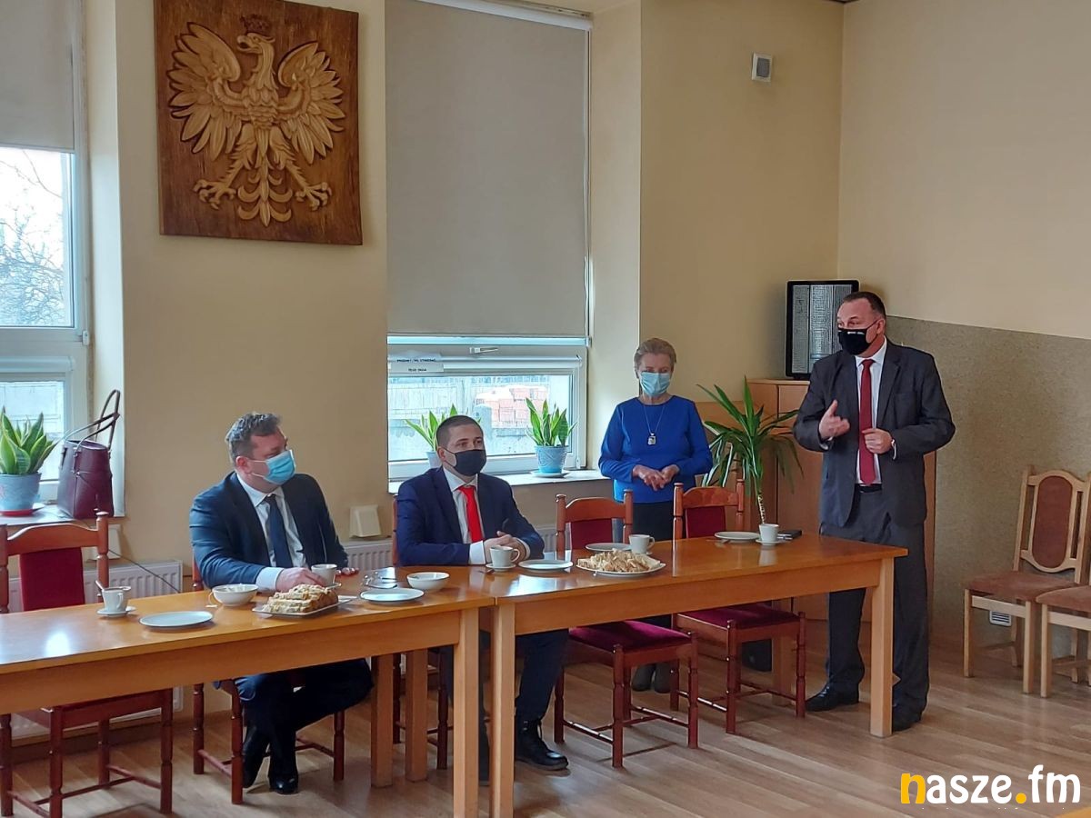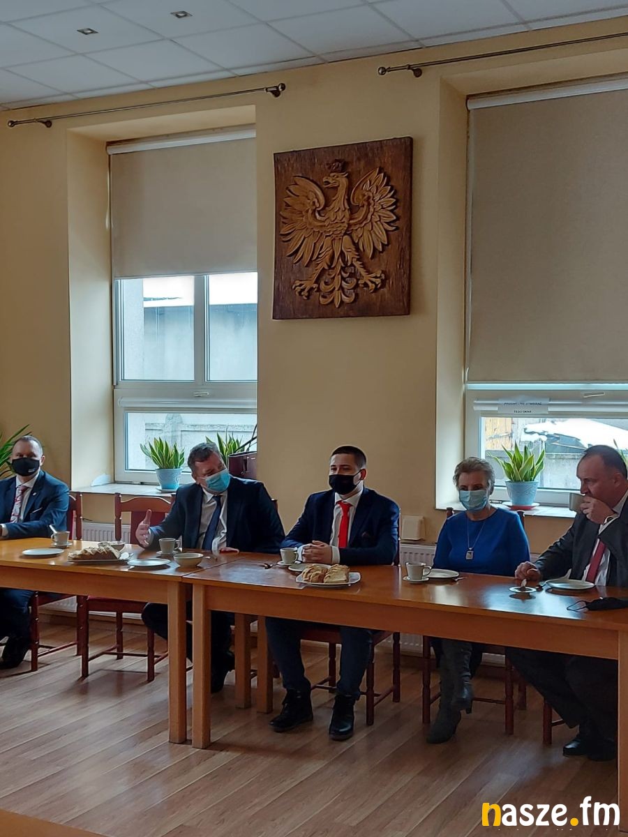 Minister Michał Wójcik w Urzędzie Gminy i Miasta Szadek spotkał się z burmistrzem Arturem Ławniczakiem, przewodniczącą Rady Gminy i Miasta Szadek Janiną Ogińską, członkiem Zarządu Województwa Łódzkiego Robertem Baryłą oraz Januszem Kołodziejskim, dyrektorem Biura Poselskiego Posła Tadeusza Woźniaka.
