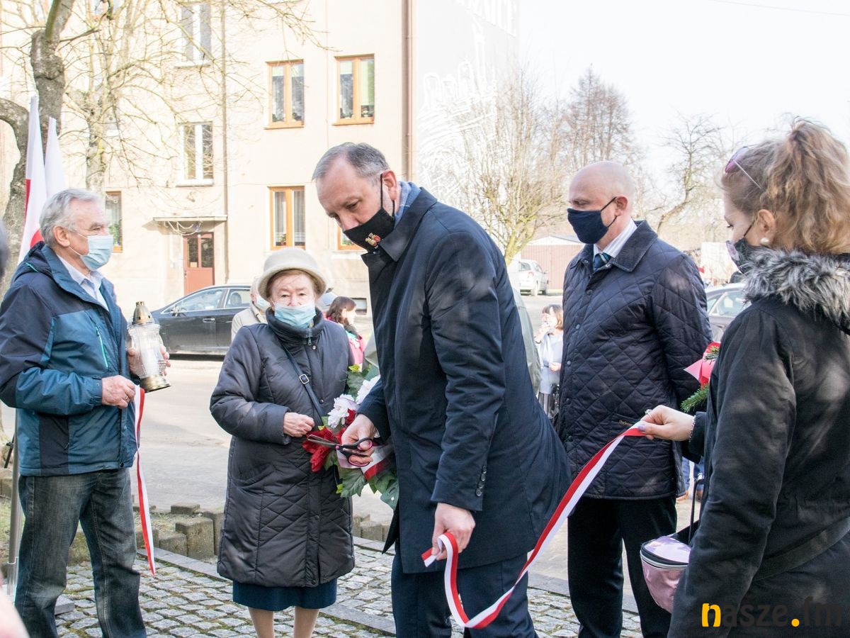 Podczas skromnej uroczystości symbolicznie odsłonięto odnowiony pomnik, pod którym następnie złożono kwiaty i zapalono znicze.