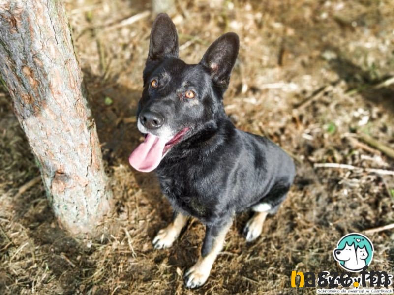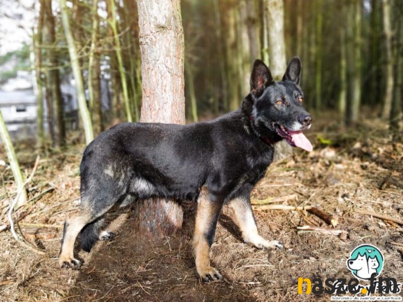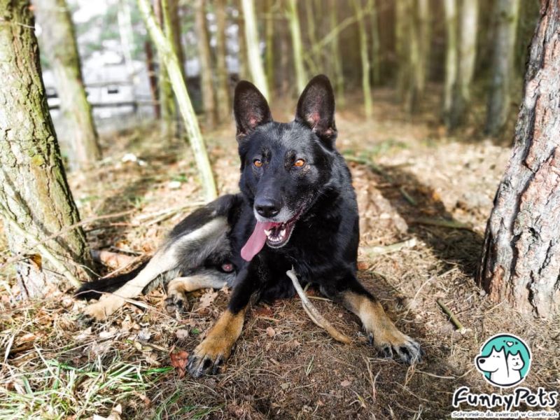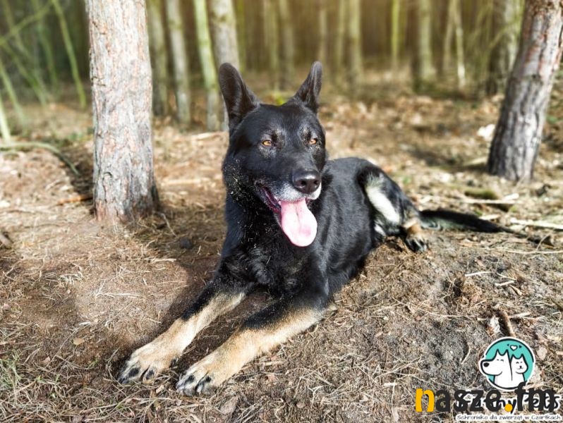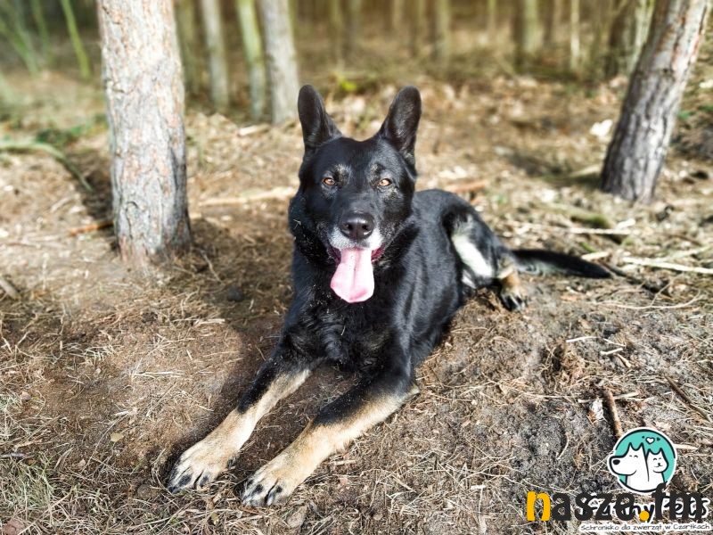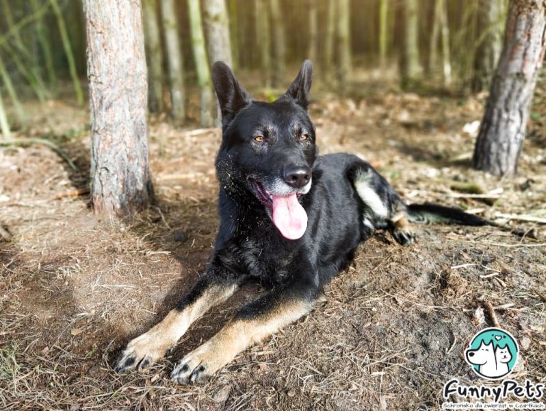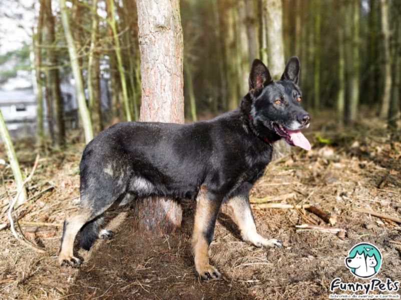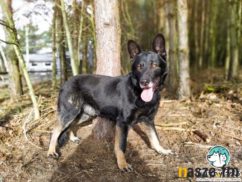 Kolejnym psiakiem jest 6-letni Hermes, psiak sporych rozmiarów o jeszcze większym sercu. Hermes jest wspaniałym psem, który nie lubi nudy, zdecydowanie bardziej woli aktywnie spędzać czas, na długich spacerach jest w swoim żywiole, uwielbia biegać, węszyć, a to wszystko oczywiście u boku człowieka. Jest bardzo towarzyski i kontaktowy, bywa mocno wylewny w uczuciach, więc przy maluchach trzeba uważać, żeby z tej miłości niechcący nie zrobił krzywdy, bo lubi sobie chłopak skoczyć i wtulić się na dwóch łapach. Ma dużo siły i na smyczy zdarza mu się z ekscytacji rwać do przodu, kiedy się wybiega, idzie tempem opiekuna, blisko nogi. Sądzimy, że jak poczuje się pewniej to może zacząć pilnować posesji, w kojcu też lubi sobie szczeknąć. Zdecydowanie lepiej dogaduje się z psami swojej wielkości, lub większymi, te mniejsze próbuje "ustawiać". Mimo swoich gabarytów powinien odnaleźć się w mieszkaniu, ale dom z ogrodem to również świetna opcja.
