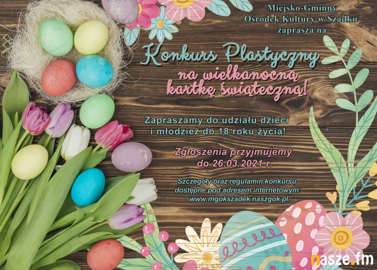 Miejsko- Gminny Ośrodek Kultury w Szadku ogłosił także konkurs na najpiękniejszą kartkę świąteczną. Udział w nim może wziąć młodzież do 18 roku życia. Termin zgłaszania prac upływa 26 marca. Regulamin konkursu można przeczytać TUTAJ
