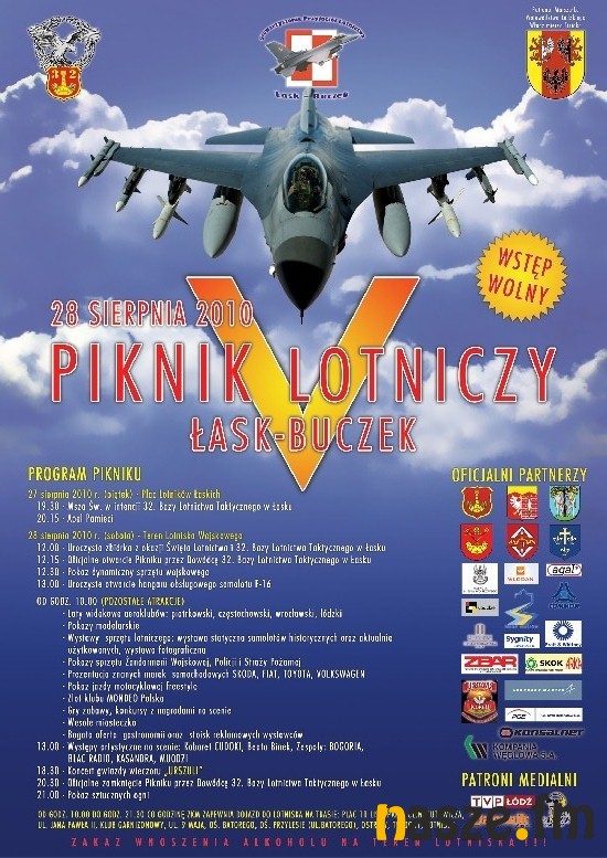 Coraz bliżej do V Jubileuszowego Międzynarodowego Pikniku Lotniczego Łask - Buczek. Imprezę zaplanowaną na 28 sierpnia organizują Dowódca 32. Bazy Lotnictwa Taktycznego w Łasku i Stowarzyszenie Przyjaciół Lotnictwa Łask - Buczek.