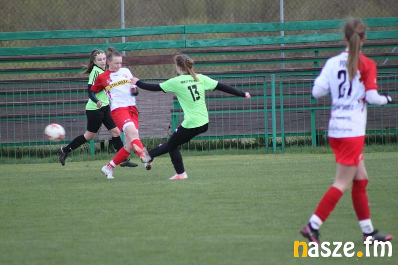 Po przymusowej przerwie związanej z obostrzeniami rządu drużyna "Pogonistek" udanie rozpoczęła rundę wiosenną wyjazdowym meczem w Piątnicy. Od początku zespół Pogoni osiągnął lekką przewagę, ale pierwszą groźną sytuację stworzył sobie dopiero w 15 minucie, kiedy po błędzie jednej z defensorek gospodarzy sytuacji sam na sam z bramkarką nie wykorzystała Milena Terka. Najlepszą sytuację na strzelenie bramki w pierwszej połowie meczu piłkarki Pogoni miały w 23 minucie, kiedy w polu karnym Fortów faulowana była debiutująca w zespole Pogoni Agnieszka Twardowska. Do rzutu karnego podeszła Anna Bergier, ale jej sygnalizowany strzał z "jedenastki" obroniła Kamila Zabielska. Do końca pierwszej odsłony meczu oba zespoły toczyły zacięty i wyrównany pojedynek.