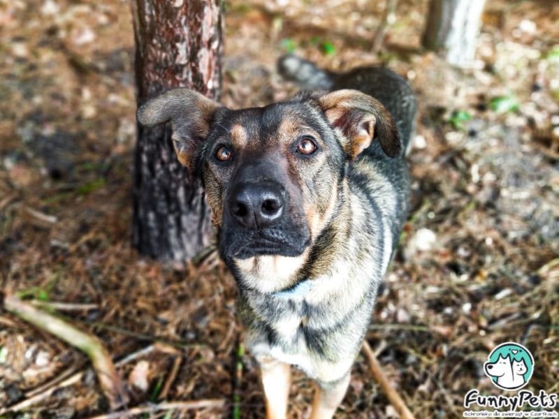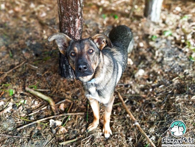 Na początek piękna sunia o imieniu Gaba. Gaba to sunia, która z wielką nadzieją wypatruje człowieka, a jego bliskość jest gwarantem jej szczęścia. To świetna sunia, bardzo spragniona człowieka na wyłączność, aczkolwiek w pierwszym kontakcie bywa zdystansowana i nieśmiała, kiedy kogoś lepiej pozna, staje się mocno wylewna w uczuciach. Uwielbia skakać, wtula się wtedy na dwóch łapkach i rozdaje buziaki. Świetnie radzi sobie na smyczy, idzie blisko opiekuna, uważnie obserwując okolicę, jest ciekawa świata. Będzie idealną towarzyszką długich spacerów, czy biegania, sprawdzi się też na rodzinnych wycieczkach, to typ psa, który za swoim człowiekiem będzie chodził krok w krok. To wesoła i bardzo pozytywna psinka, dobrze dogaduje się z innymi psami, nie wykazuje agresji, aktualnie mieszka w kojcu z kumplem nieco mniejszym od siebie i nie ma między nimi zgrzytów, jeżeli już zaczepia to do zabawy.