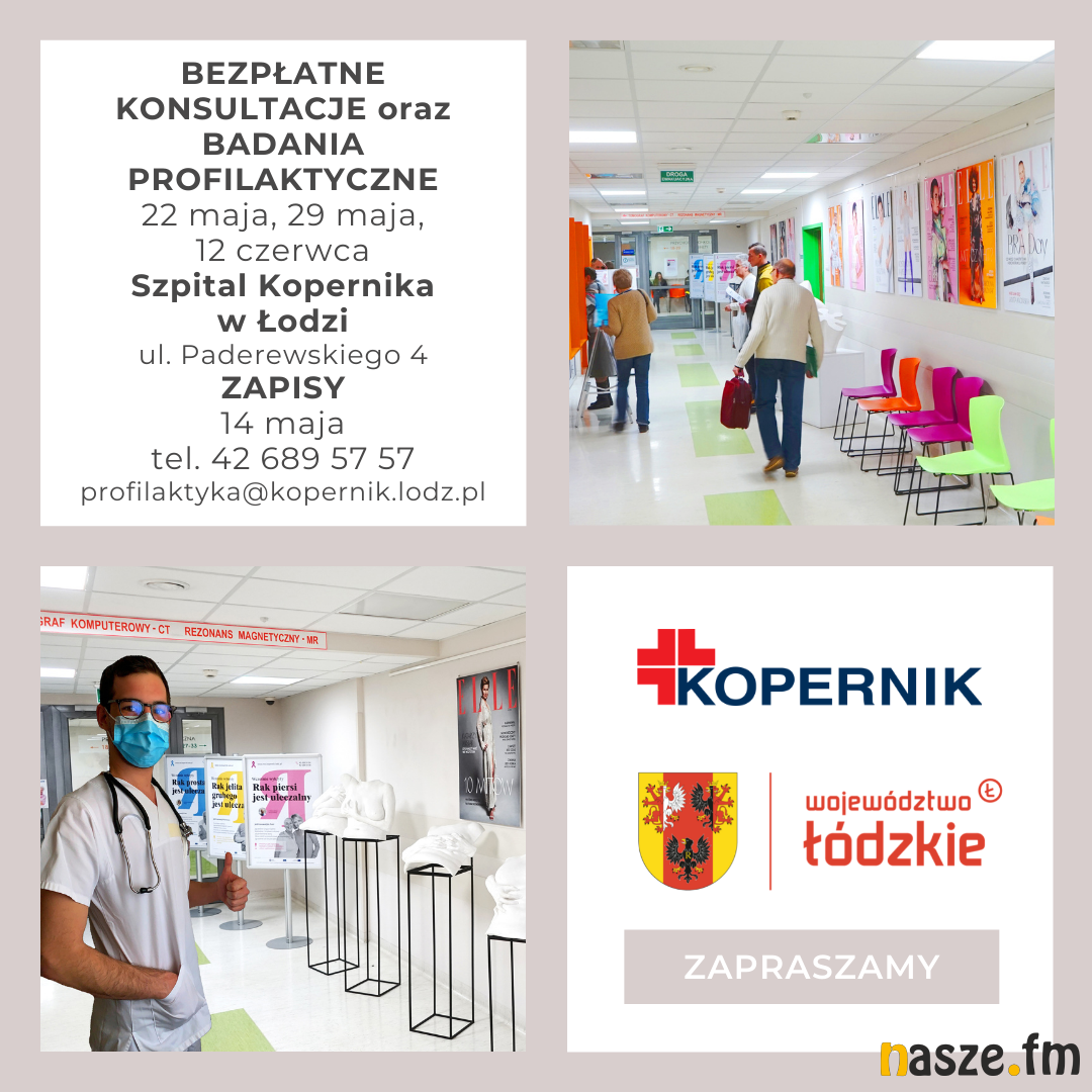 Region przyjazny, to region dbający o swoich mieszkańców. W związku z tym Szpital Wojewódzki im. Kopernika w Łodzi zaprasza na bezpłatne konsultacje i badania lekarskie w ramach akcji profilaktyki onkologicznej. W trzy soboty: 22 i 29 maja oraz 12 czerwca będzie można uzyskać bezpłatną poradę z zakresu: