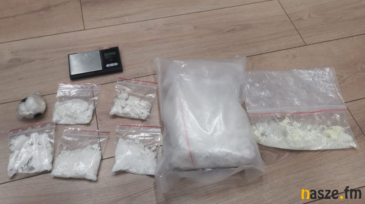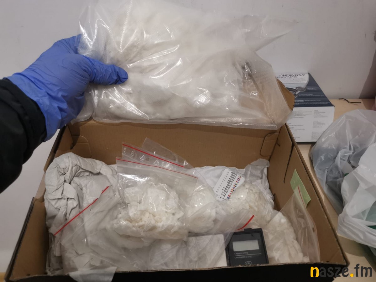 Funkcjonariusze przeszukali mieszkanie. W szafie jednego z pomieszczeń znaleźli tekturowe pudełko, w którym była torebka foliowa z metamfetaminą oraz kilka dilerek z porcjami białej substancji przygotowanej do dalszej dystrybucji. W szafie policjanci znaleźli również wagę elektroniczną do porcjowania narkotyków. Łącznie funkcjonariusze zabezpieczyli prawie 1400 gramów metamfetaminy.