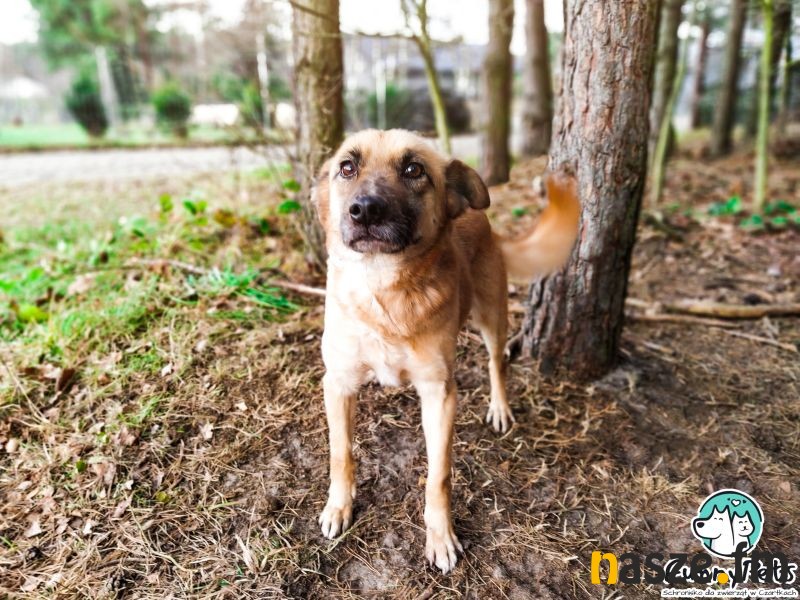 Kolejnym przystojniakiem z Czartek, który szuka domu na zawsze jest Merdek. Merdek to niesamowicie otwarty i kontaktowy psiak, który łatwo nawiązuje przyjaźnie, jest pozytywnie nastawiony do każdego człowieka. Uwielbia być w centrum zainteresowania, nie ma problemu z domaganiem się uwagi i czułości. Potrafi chodzić na smyczy, trochę się plącze, ale to kwestia regularnych spacerów, co jakiś czas lubi się zatrzymać, żeby na dwóch łapkach przytulić się opiekunowi do nogi. Dobrze czuje się na spacerach, ma na nie sporo energii i widać, że sprawiają mu ogromną frajdę, w pomieszczeniu za to jest spokojny i staje się ogromną przylepą. Jest bardzo towarzyski, najlepiej czuje się przebywając wśród ludzi, jest bardzo spragniony kontaktu. Cierpliwie znosi zabiegi pielęgnacyjne. Dobrze dogaduje się z innymi psami, zarówno mniejszymi, jak i większymi. To typowy kanapowiec, który z pewnością dobrze odnajdzie się w mieszkaniu, ale może zamieszkać też w domu z ogrodem. Może właśnie u Ciebie?