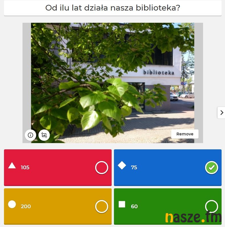 Podsumowaniem działań przeprowadzonych przez Powiatową Bibliotekę Publiczną w Sieradzu, w ramach Ogólnopolskiego Tygodnia Bibliotek był quiz wiedzy ze znajomości biblioteki, jej zbiorów oraz twórczości lokalnych autorów, przeprowadzony online za pomocą aplikacji "Kahoot!". Znamy wyniki tego konkursu.