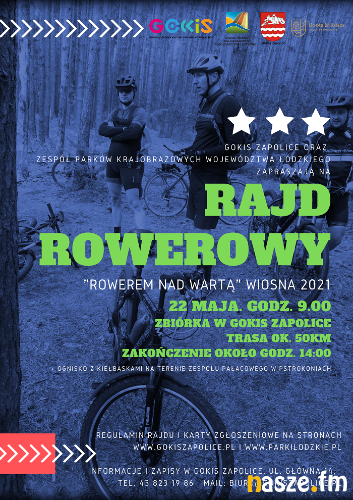 W sobotę, 22 maja, w Zapolicach odbędzie się rajd rowerowy "Rowerem nad Wartą". Jest on organizowany przez Gminny Ośrodek Kultury i Sportu w Zapolicach we współpracy z Zespołem Parków Krajobrazowych Województwa Łódzkiego.